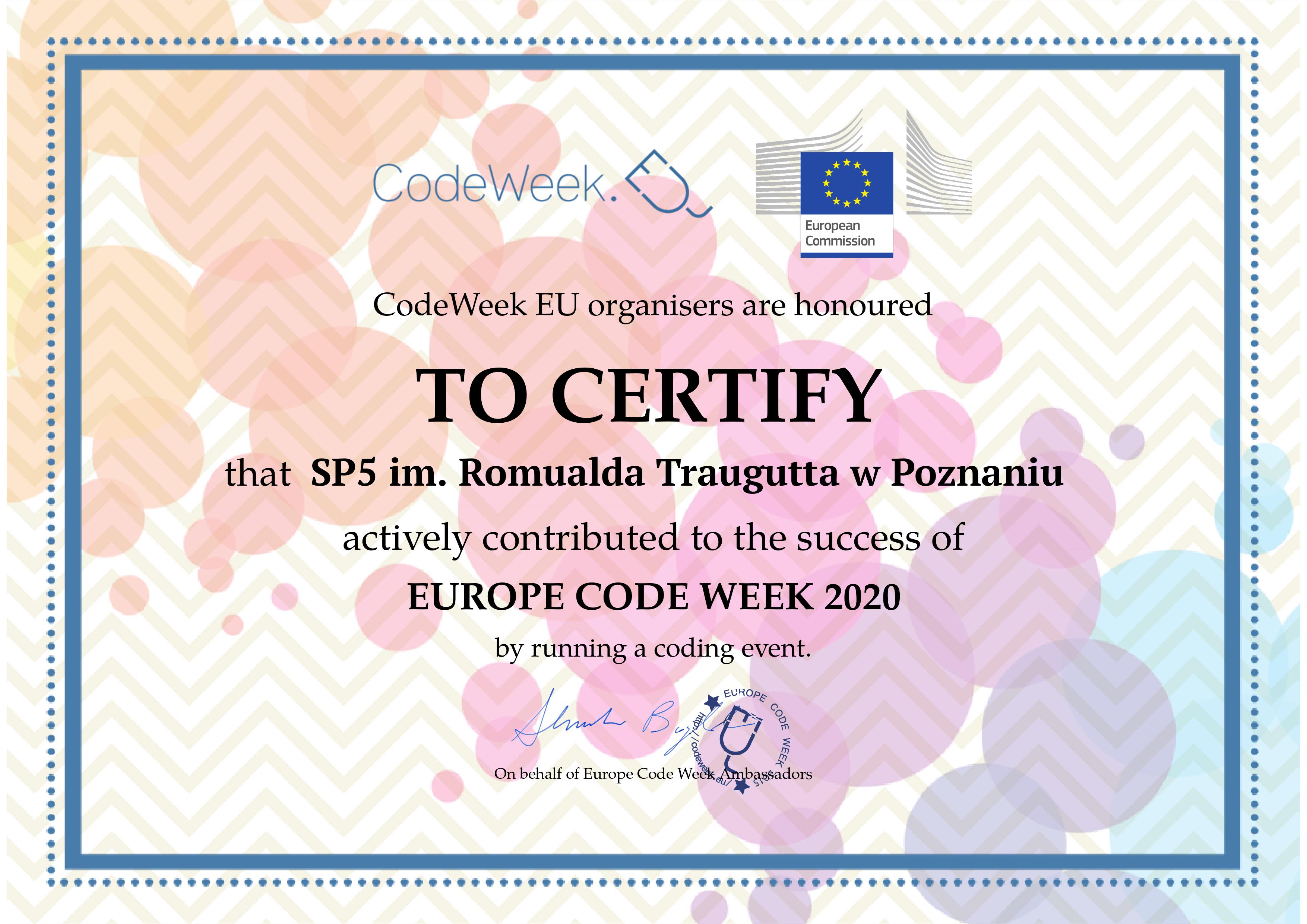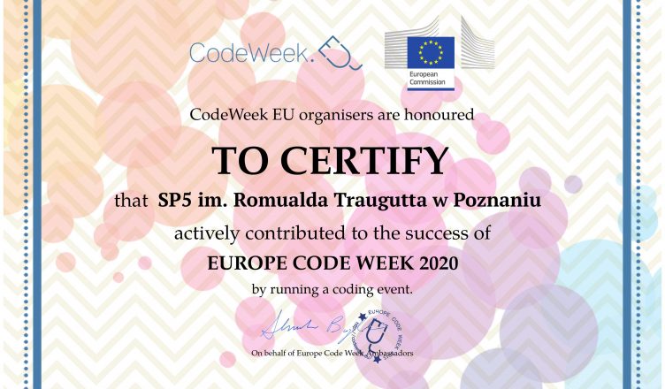 Tegoroczny CodeWeek odbywał się w dniach od 10 do 25 października 2020 roku. Uczniowie naszej szkoły aktywnie włączyli się w celebrowanie tego święta. W ramach zrealizowanych z tej okazji zajęć uczniowie klas III i IV mieli możliwość zapoznania się z tajnikami podstaw programowania i robotyki. Starsi uczniowie (klasy V-VI) zaś rozwijali swe logiczne i algorytmiczne myślenie programując w języku wizualnym Scratch. Podejmowane przez uczniów aktywności były szansą nie tylko do nabywania nowych umiejętności, ale także okazją do fantastycznej zabawy i odkrywania własnych pasji.
