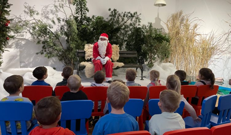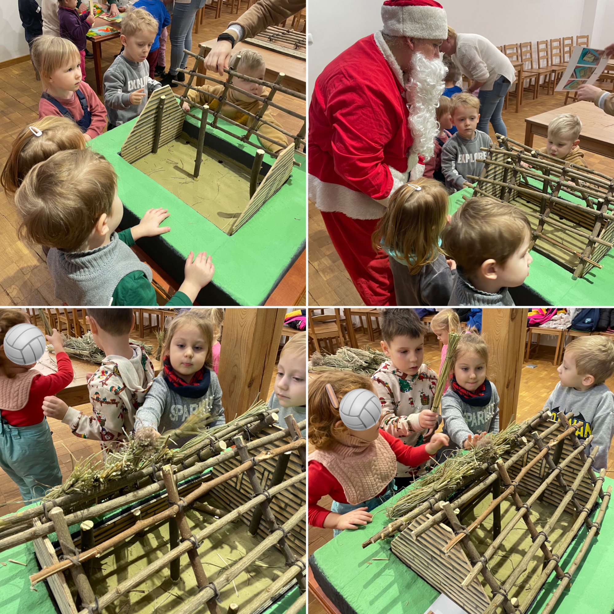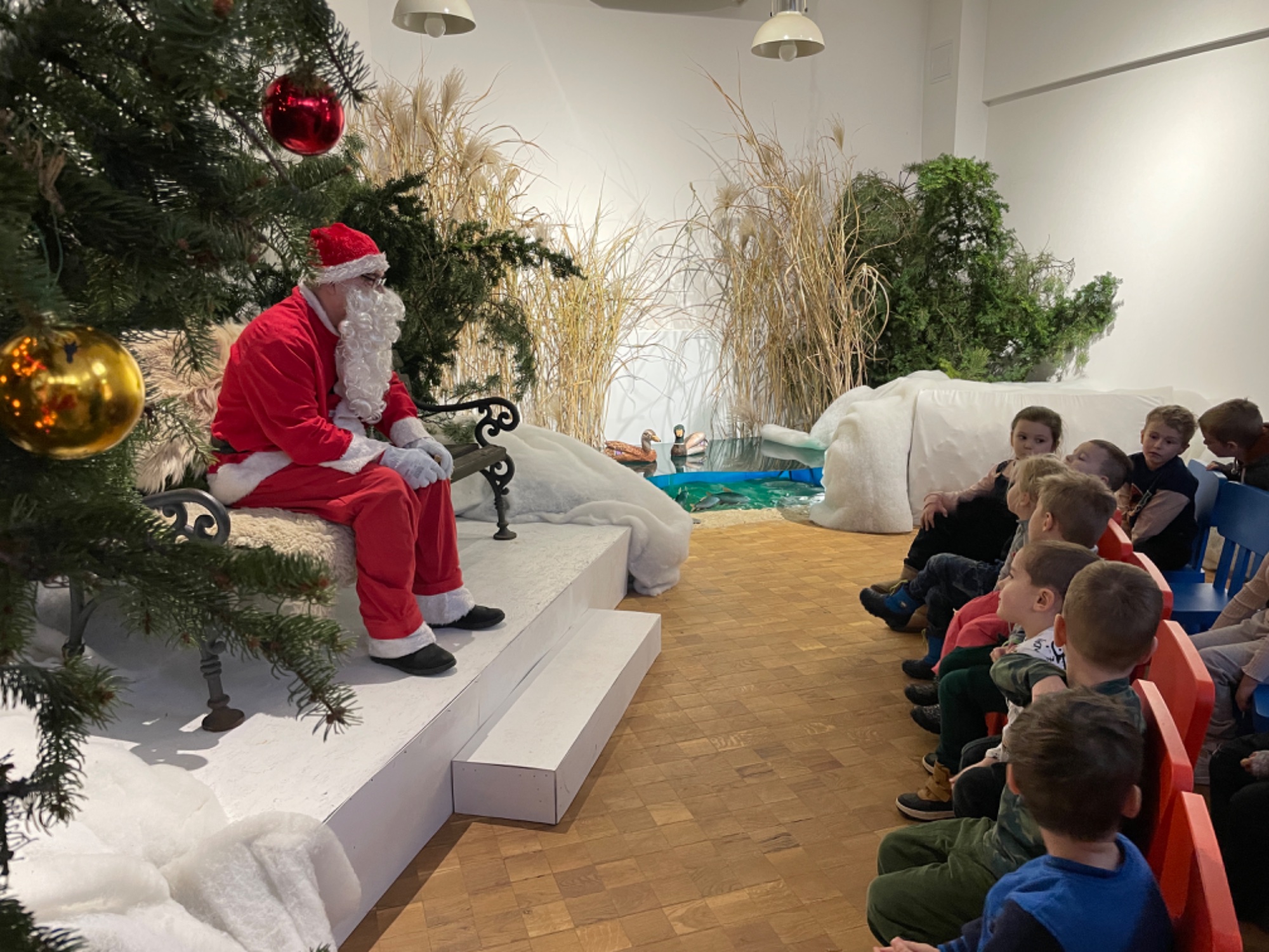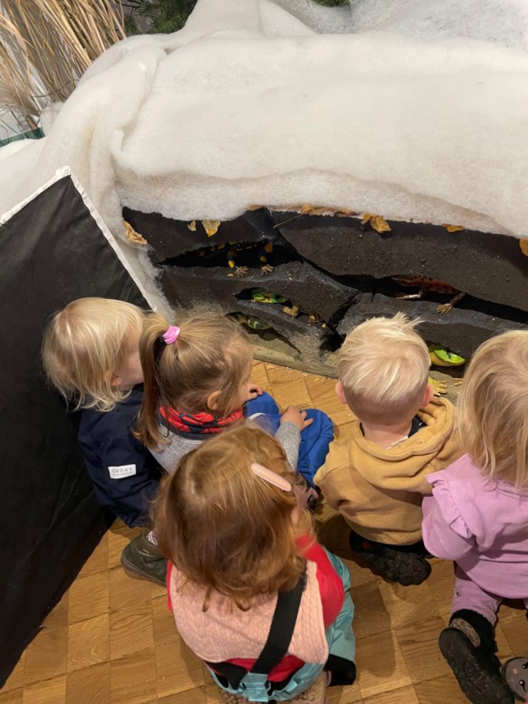 w poszukiwaniu zwierząt, a następnie uczestniczyły w warsztatach, podczas których dowiedziały się, jak zimują płazy. Przedszkolaki dzielnie radziły sobie z zespołowym wykonywaniem zadań. Układały świąteczne puzzle, układanki przedstawiające cykl życiowy żaby, wcielały się w role żab polujących na pożywienie, a nawet budowały igloo.