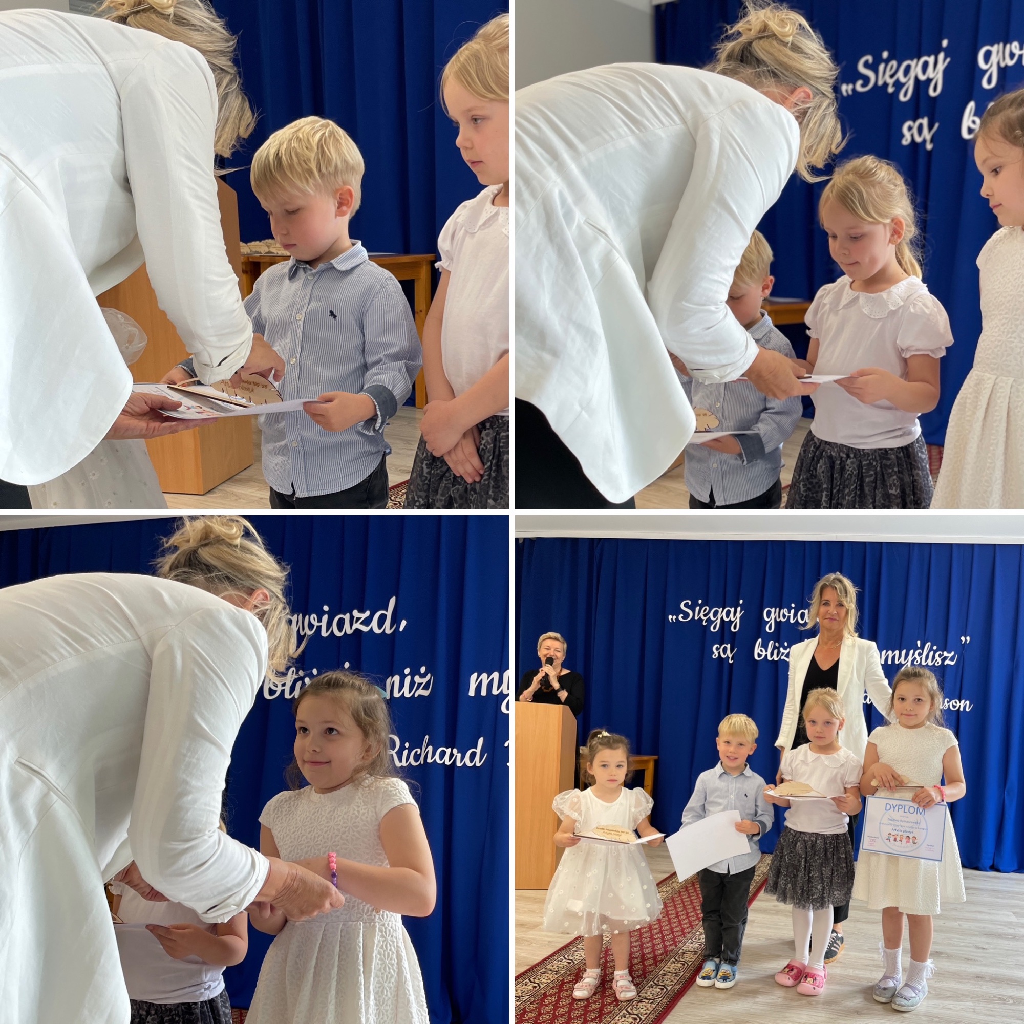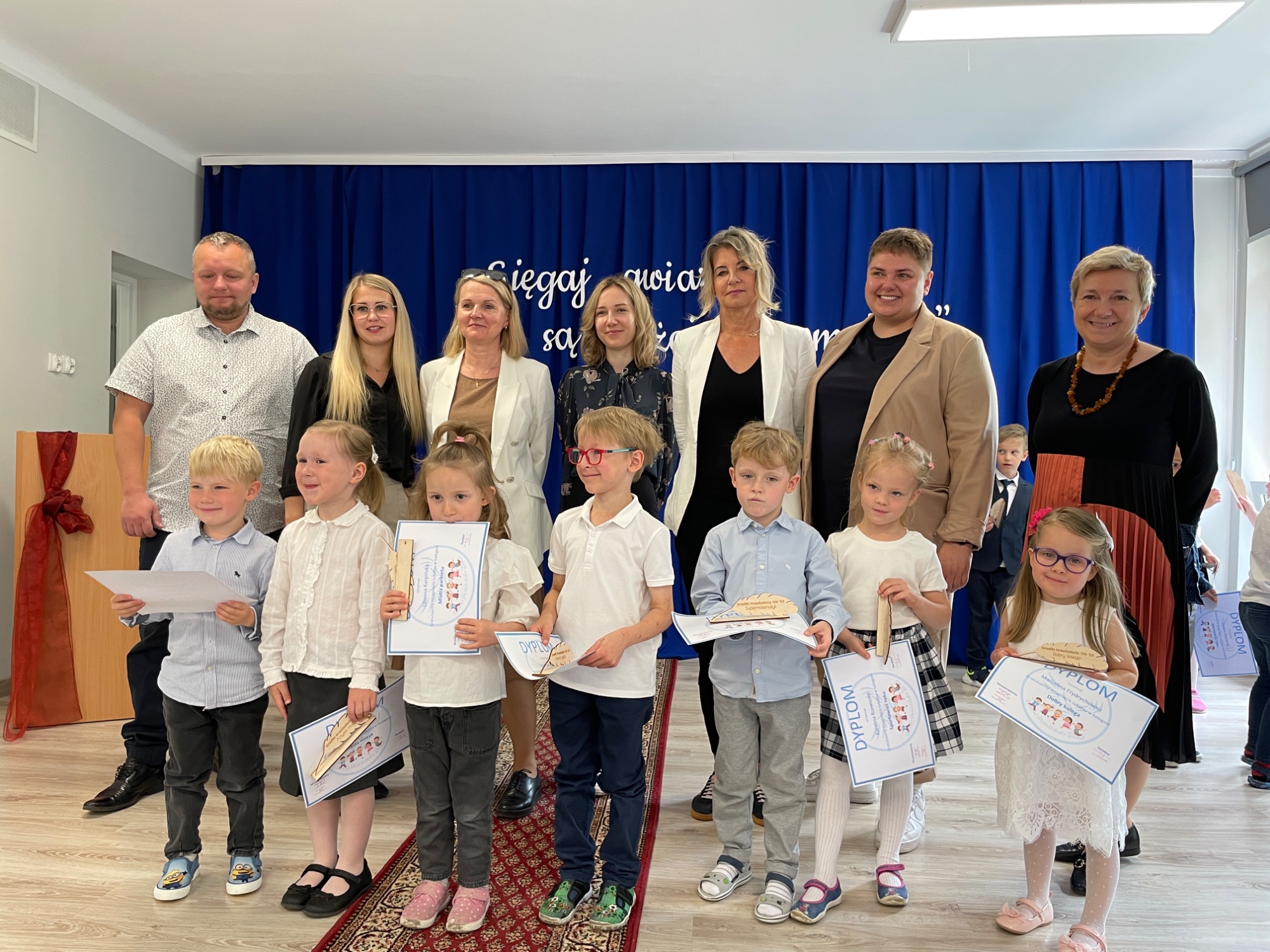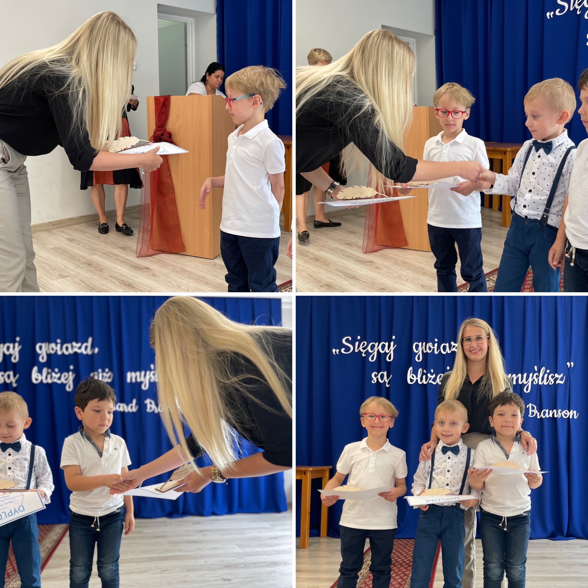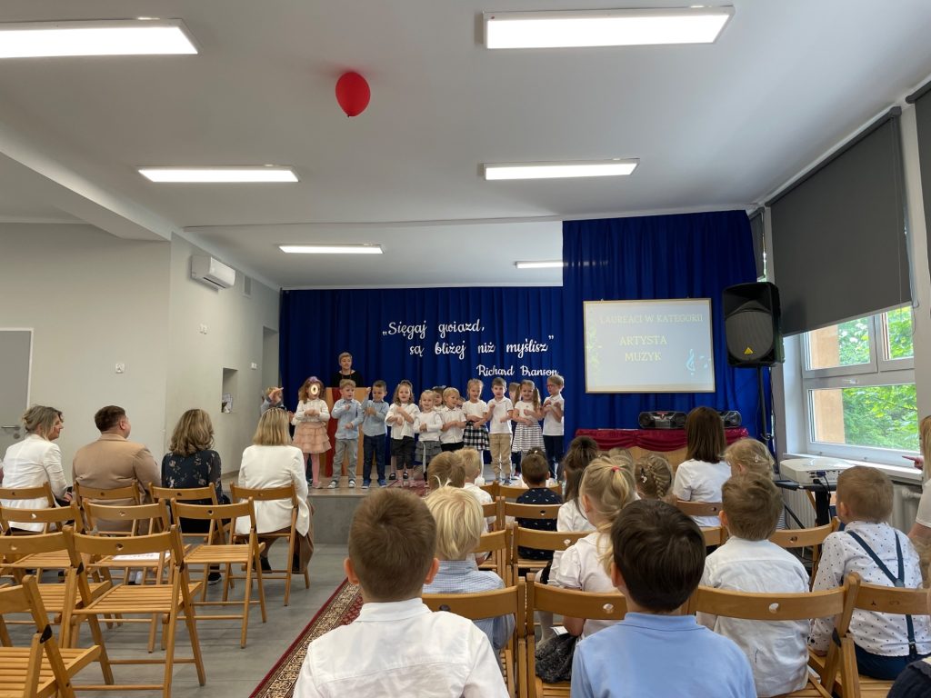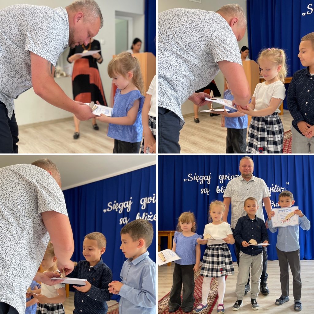 z grup przedszkolnych. W tym roku tytuły otrzymali laureaci w kategoriach: Artysta plastyk, Artysta muzyk, Sportowiec roku, Znawca języka, Super matematyk, Mistrz parkietu oraz Dobry kolega. Każde dziecko otrzymało pamiątkowy dyplom i symboliczne pióro jako znak uznania oraz inspirację do dalszego rozwijania swoich pasji. Gratulujemy wszystkim nagrodzonym i dziękujemy za wspólnie spędzony, pełen radości dzień!