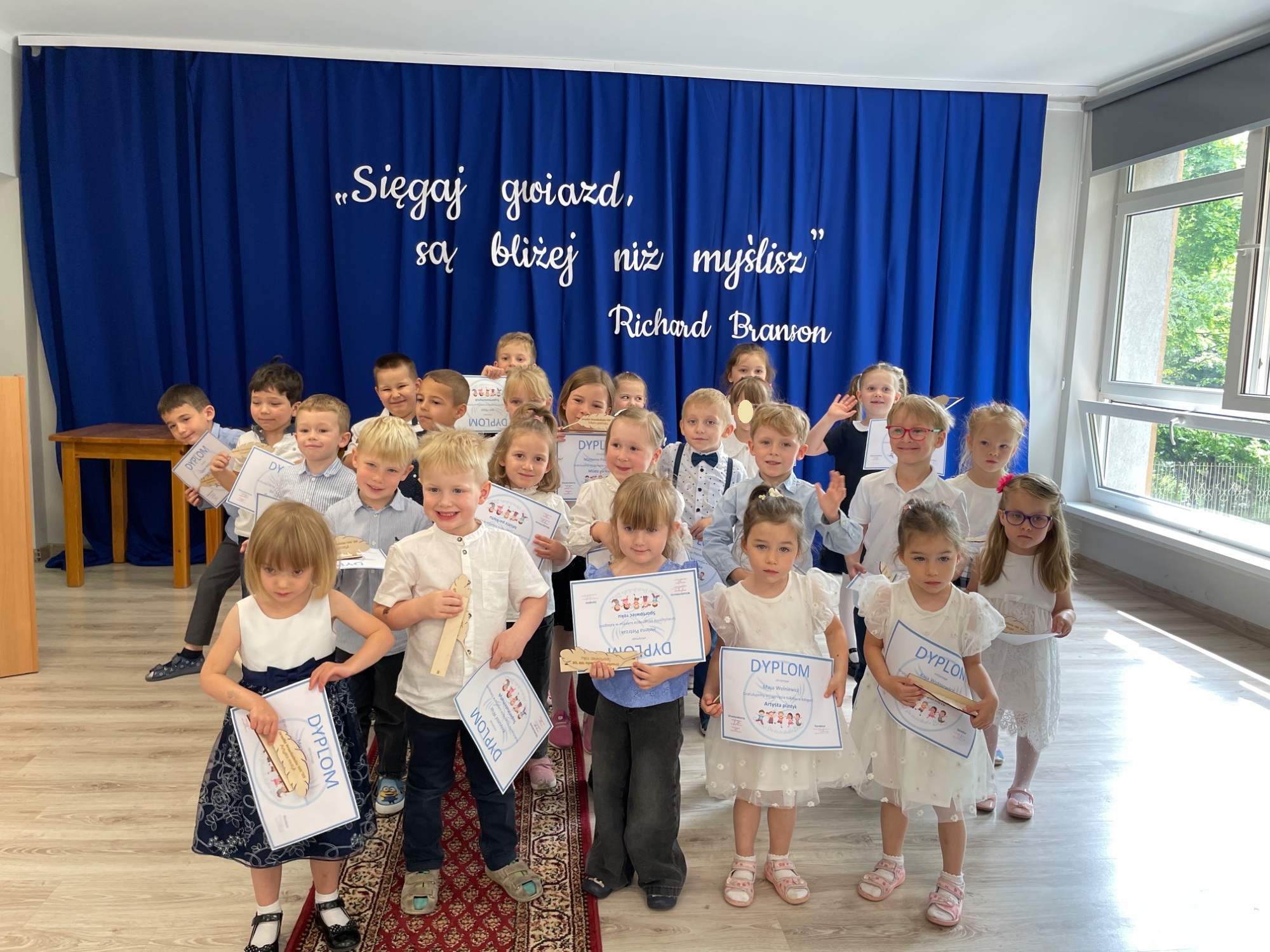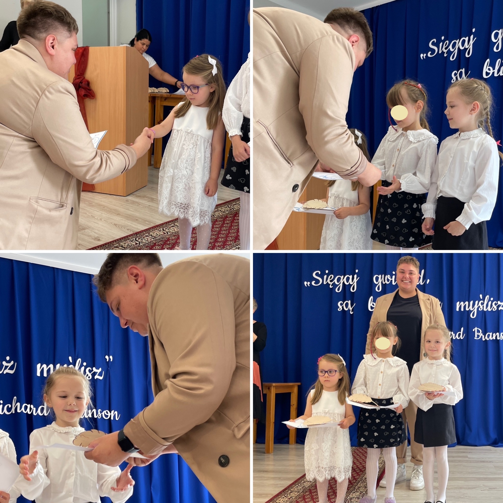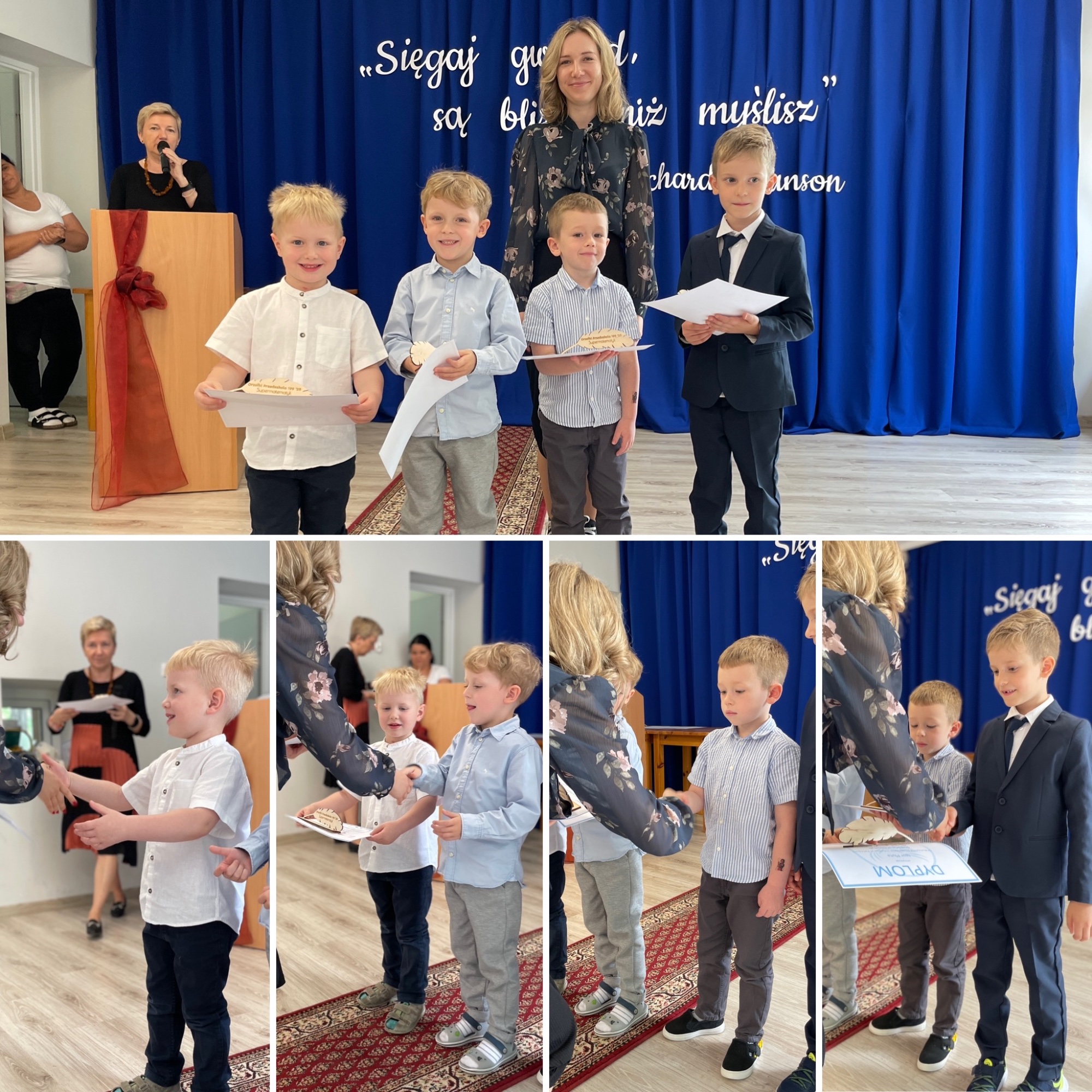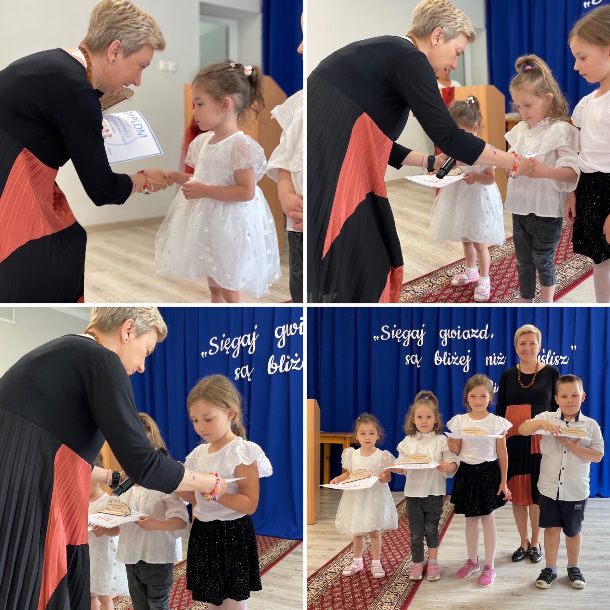 z grup przedszkolnych. W tym roku tytuły otrzymali laureaci w kategoriach: Artysta plastyk, Artysta muzyk, Sportowiec roku, Znawca języka, Super matematyk, Mistrz parkietu oraz Dobry kolega. Każde dziecko otrzymało pamiątkowy dyplom i symboliczne pióro jako znak uznania oraz inspirację do dalszego rozwijania swoich pasji. Gratulujemy wszystkim nagrodzonym i dziękujemy za wspólnie spędzony, pełen radości dzień!