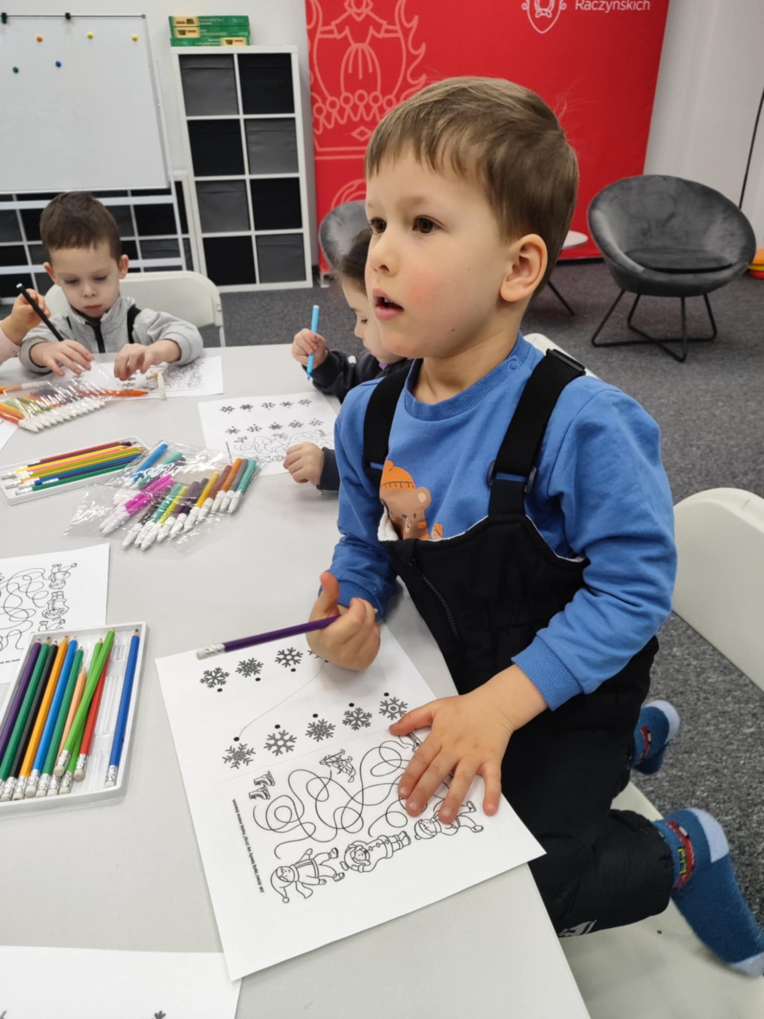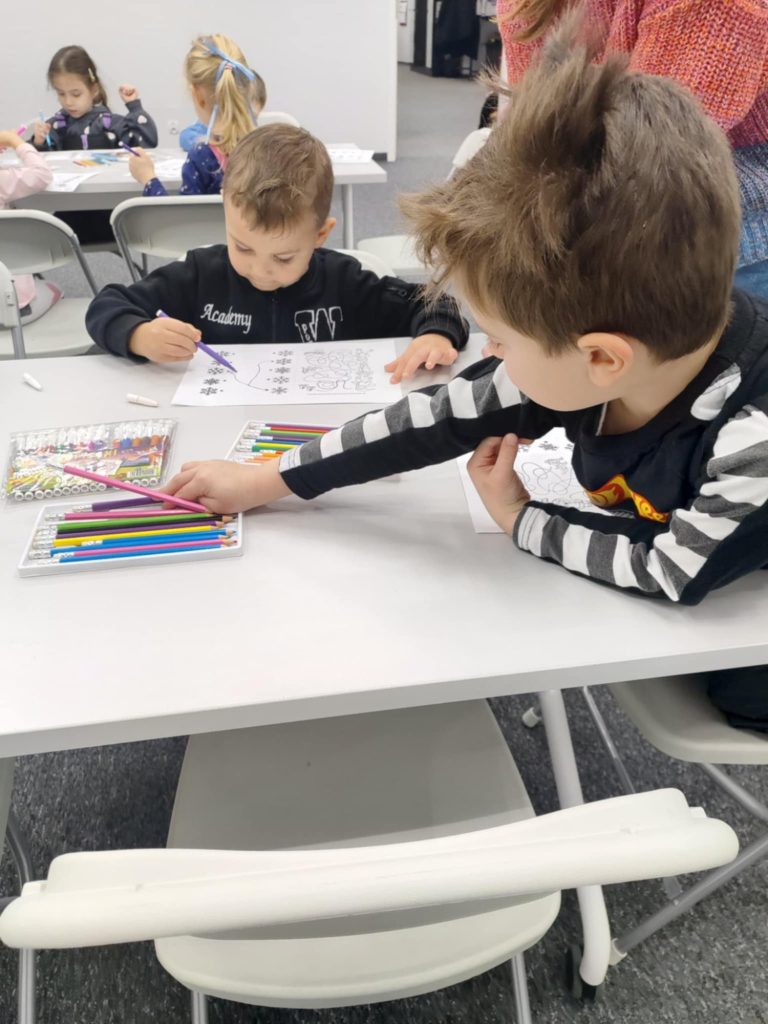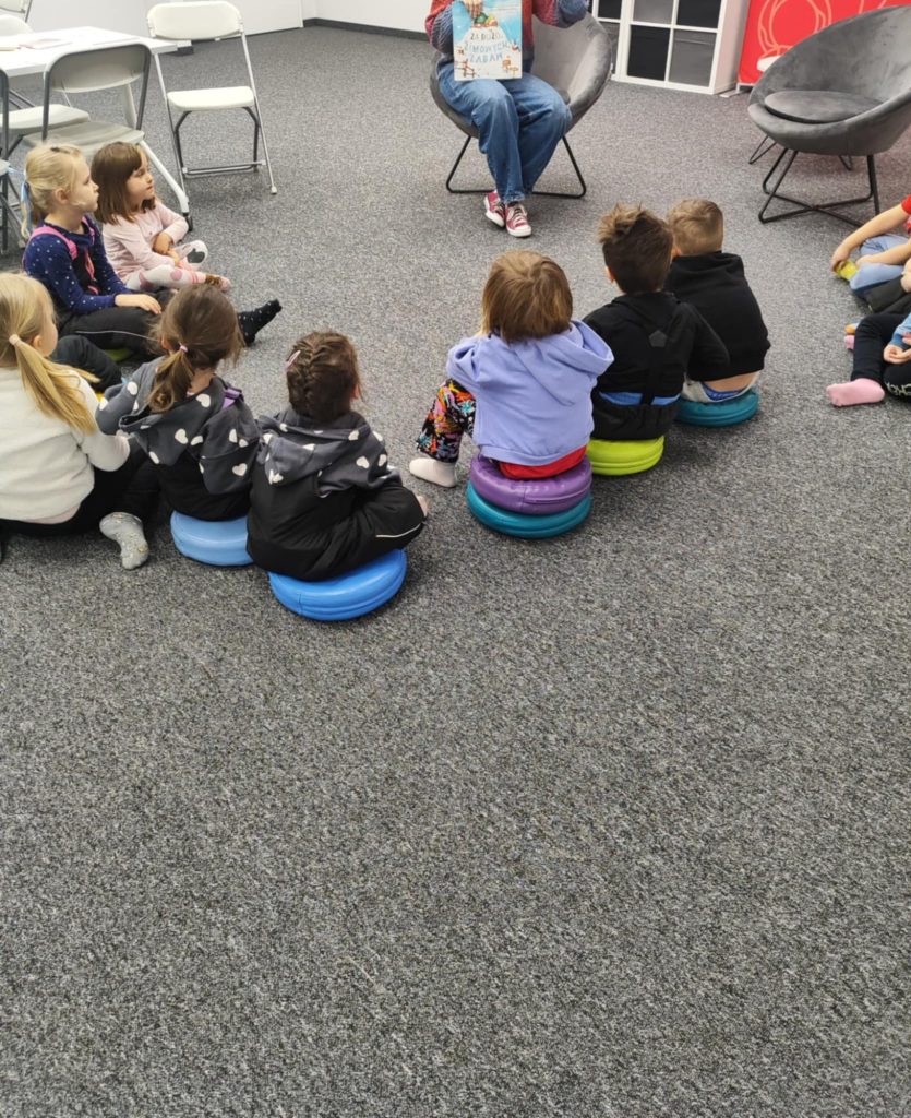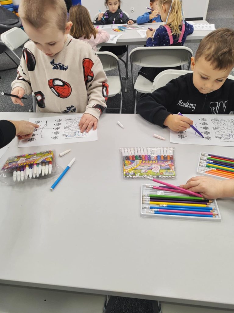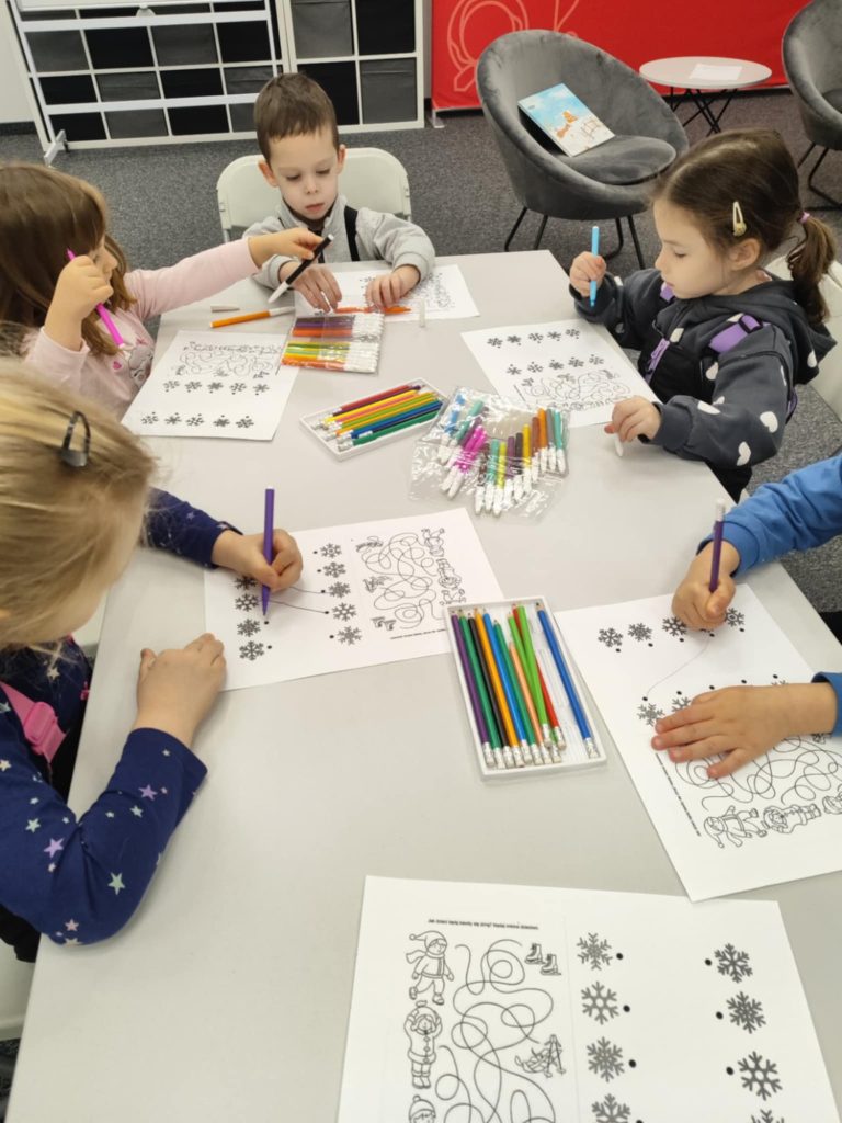 Misie na warsztatach w Bibliotece Raczyńskich poznały, w jakie zimowe zabawy bawił się żółw na podstawie książki „Za dużo zimowych zabaw”. Następnie opowiedziały co najbardziej lubią robić zimą. Na zakończenie wykonały karty pracy i zaprojektowały zimowe rękawiczki.