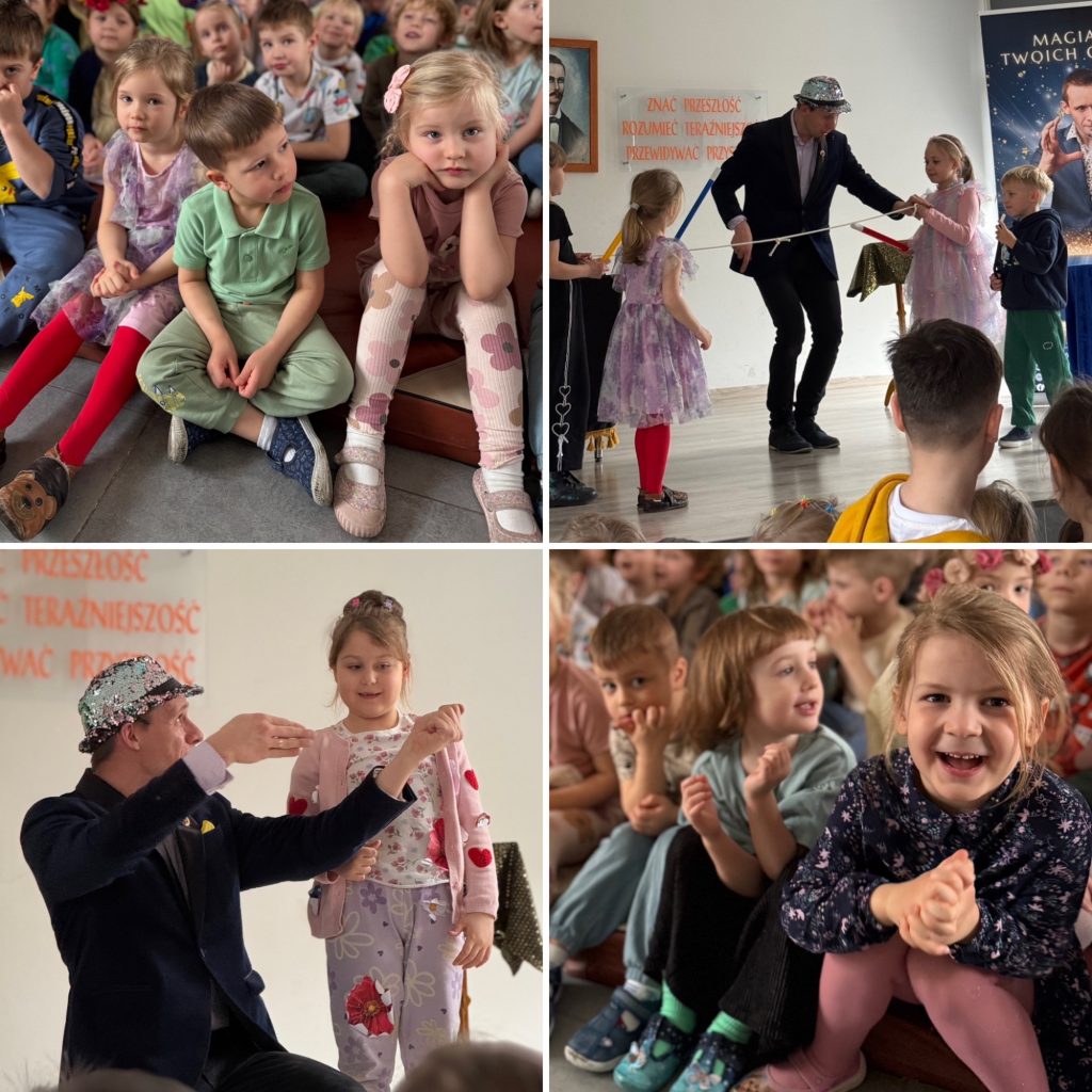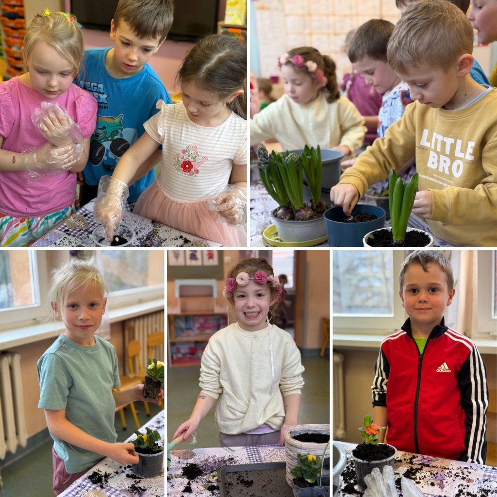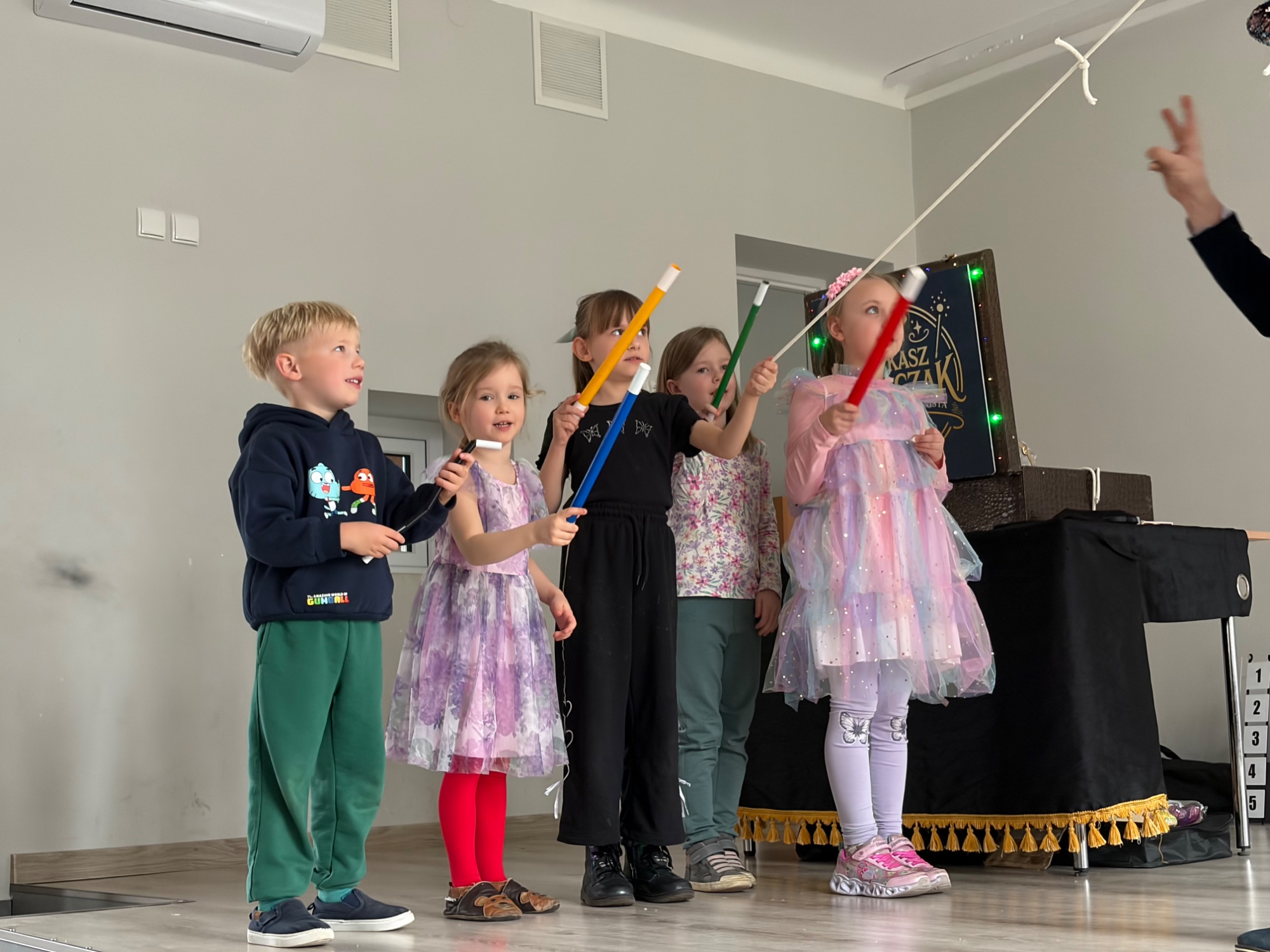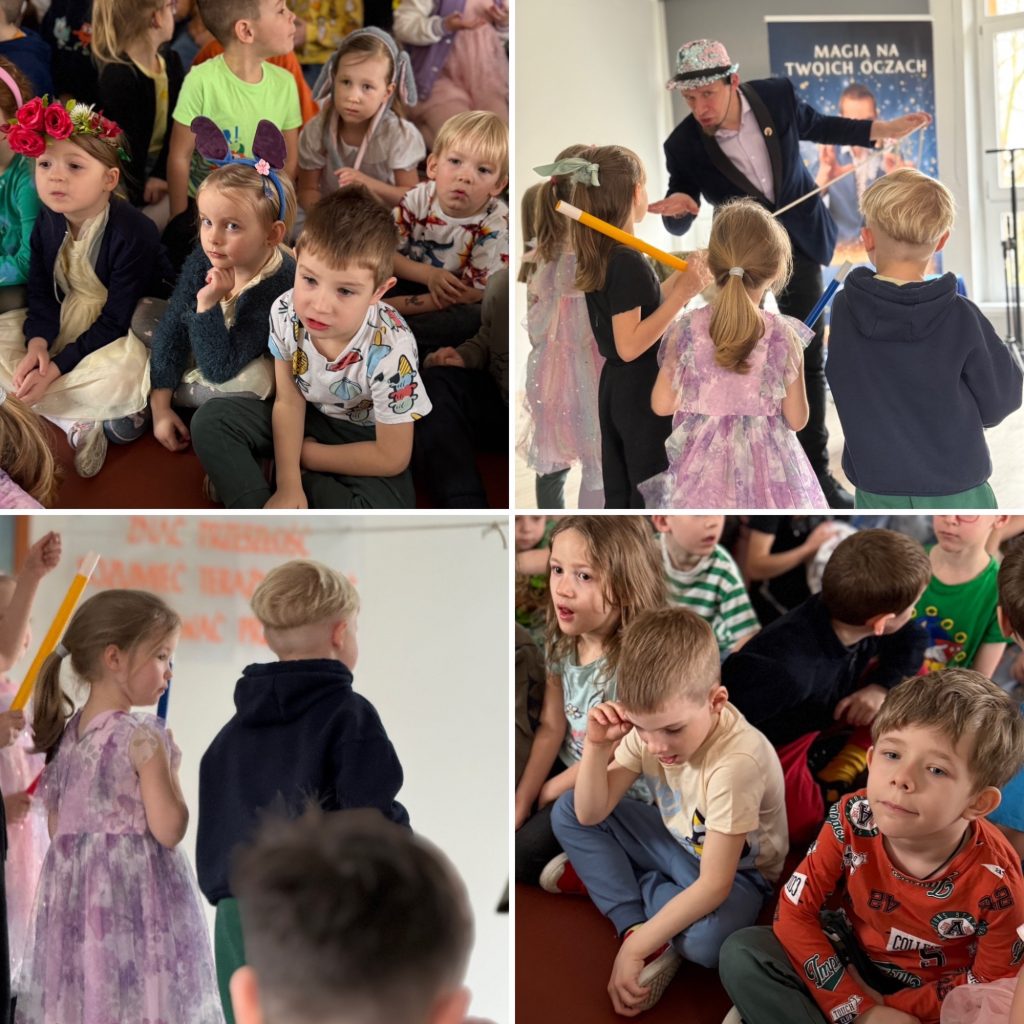 Pierwszy Dzień Wiosny w naszym przedszkolu był pełen radości, śmiechu i dobrej energii! Dzieci bawiły się, tańczyły i wzięły udział w barwnym pochodzie witającym wiosnę na boisku szkolnym. Na przedszkolaków czekała także wyjątkowa niespodzianka – występ magika, który wzbudził mnóstwo zachwytu, a po nim pyszny popcorn, który smakował wyśmienicie! Grupa „Sowy” wykorzystała ten dzień również bardzo pracowicie – dzieci siały i sadziły rośliny, które już wkrótce będą zdobić przedszkolny ogródek.