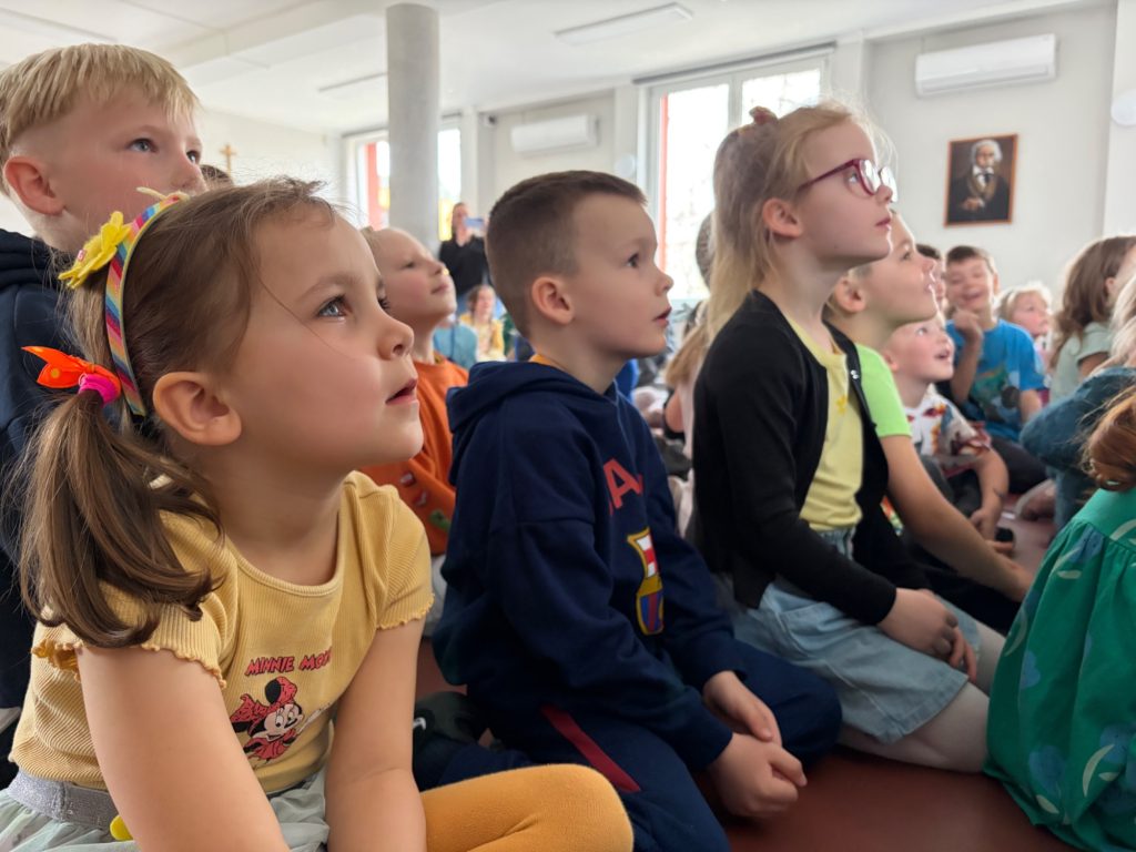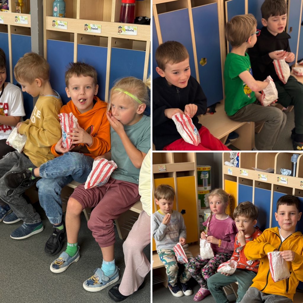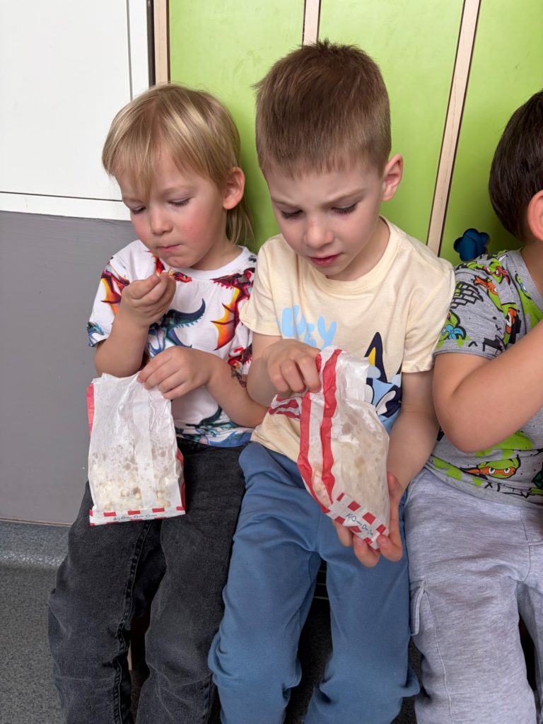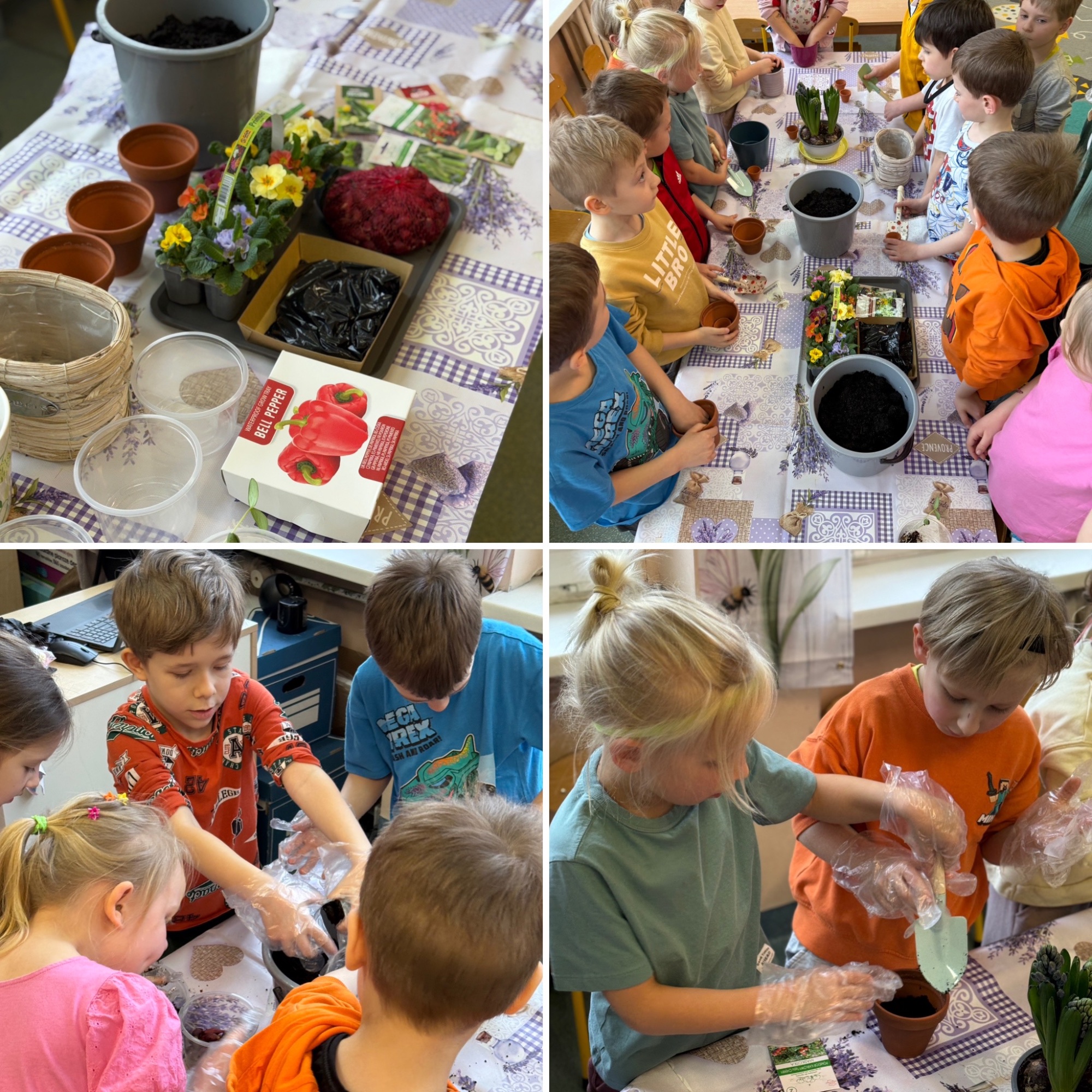 Pierwszy Dzień Wiosny w naszym przedszkolu był pełen radości, śmiechu i dobrej energii! Dzieci bawiły się, tańczyły i wzięły udział w barwnym pochodzie witającym wiosnę na boisku szkolnym. Na przedszkolaków czekała także wyjątkowa niespodzianka – występ magika, który wzbudził mnóstwo zachwytu, a po nim pyszny popcorn, który smakował wyśmienicie! Grupa „Sowy” wykorzystała ten dzień również bardzo pracowicie – dzieci siały i sadziły rośliny, które już wkrótce będą zdobić przedszkolny ogródek.