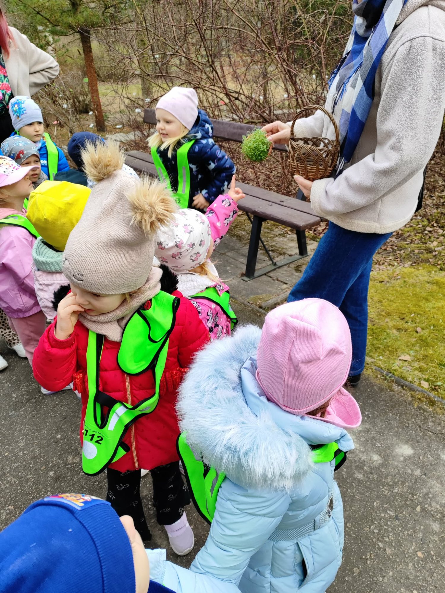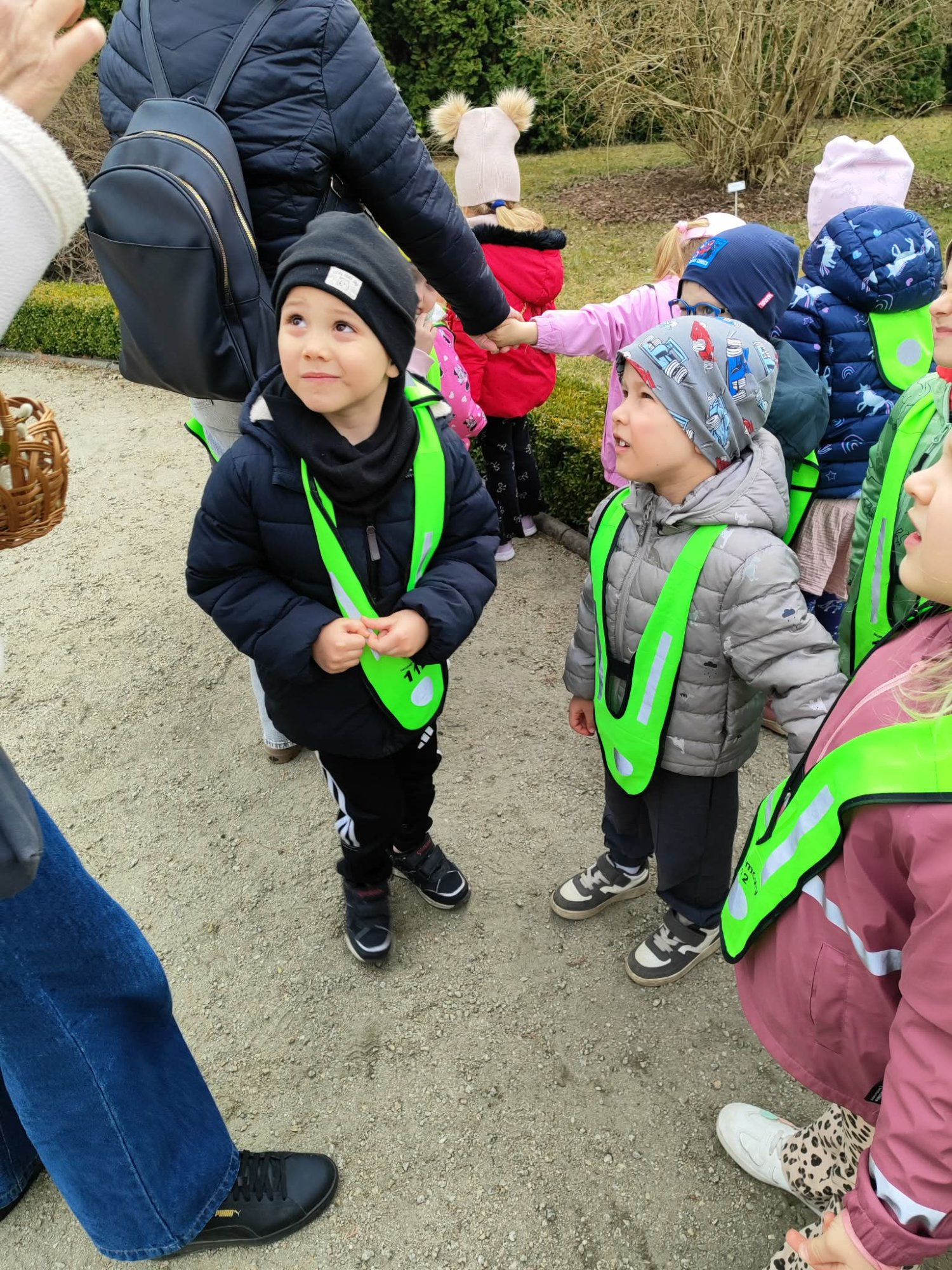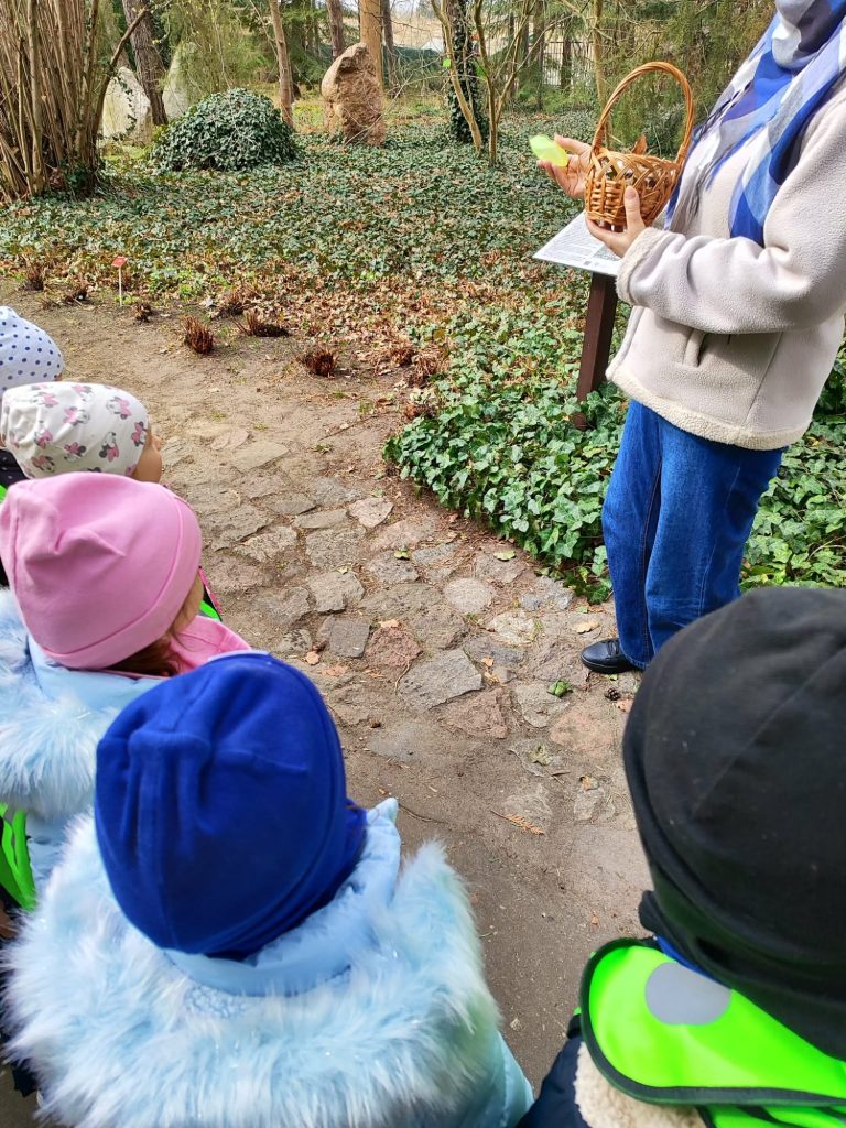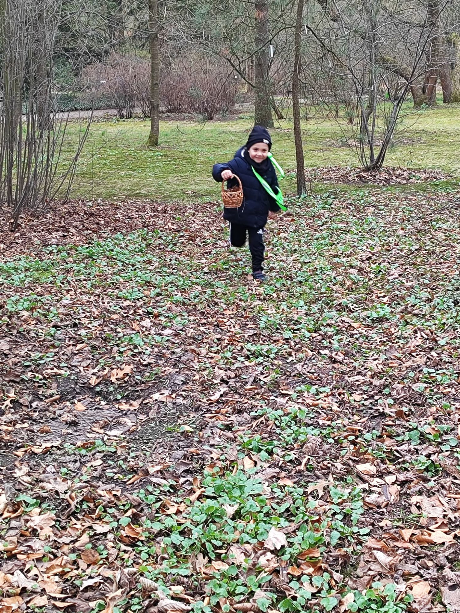 Grupa Misie podczas Warsztatów „Wśród palm, jajek i zajączków” z zaangażowaniem wyruszyła na poszukiwanie wielkanocnych koszyczków ukrytych wśród roślin, odkrywając przy tym uroki ogrodu.