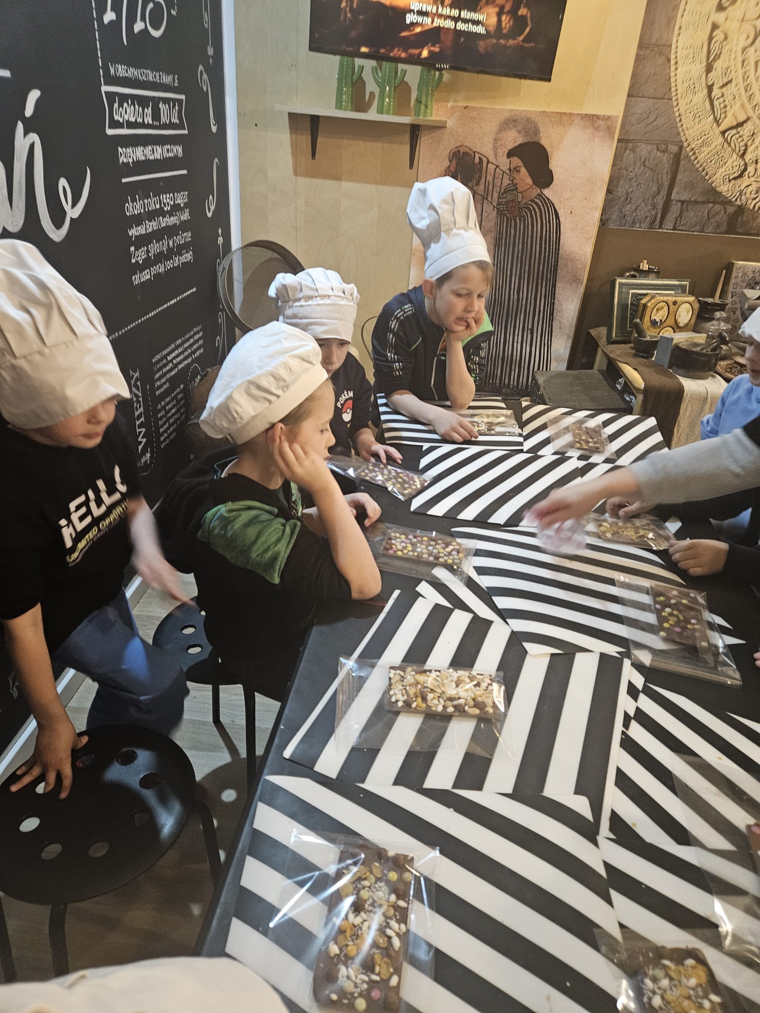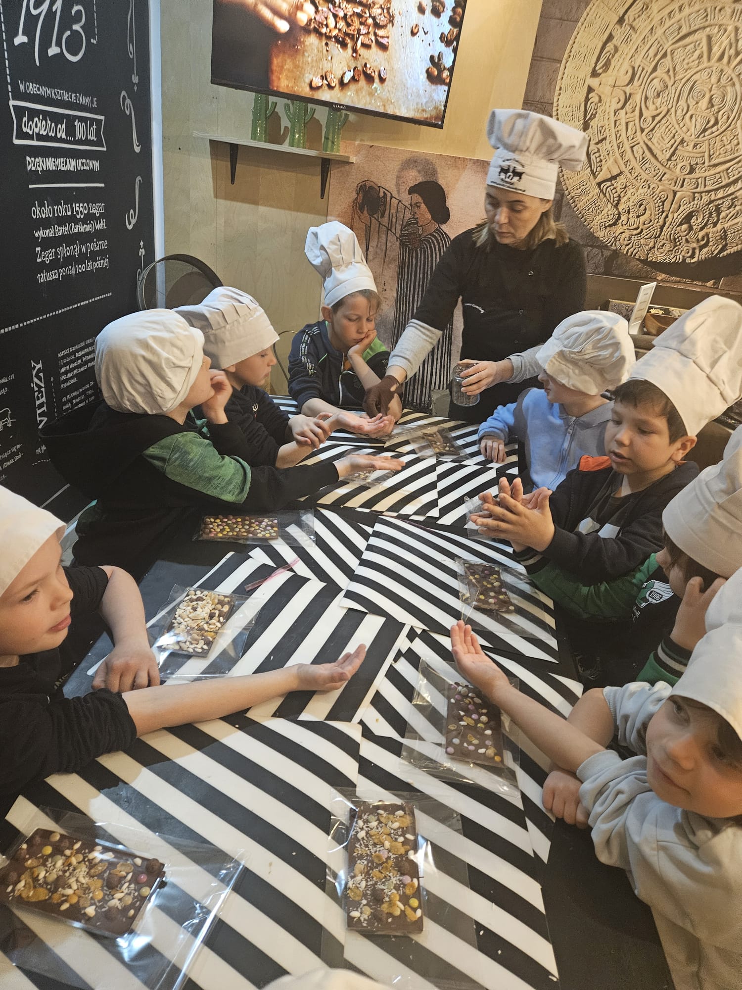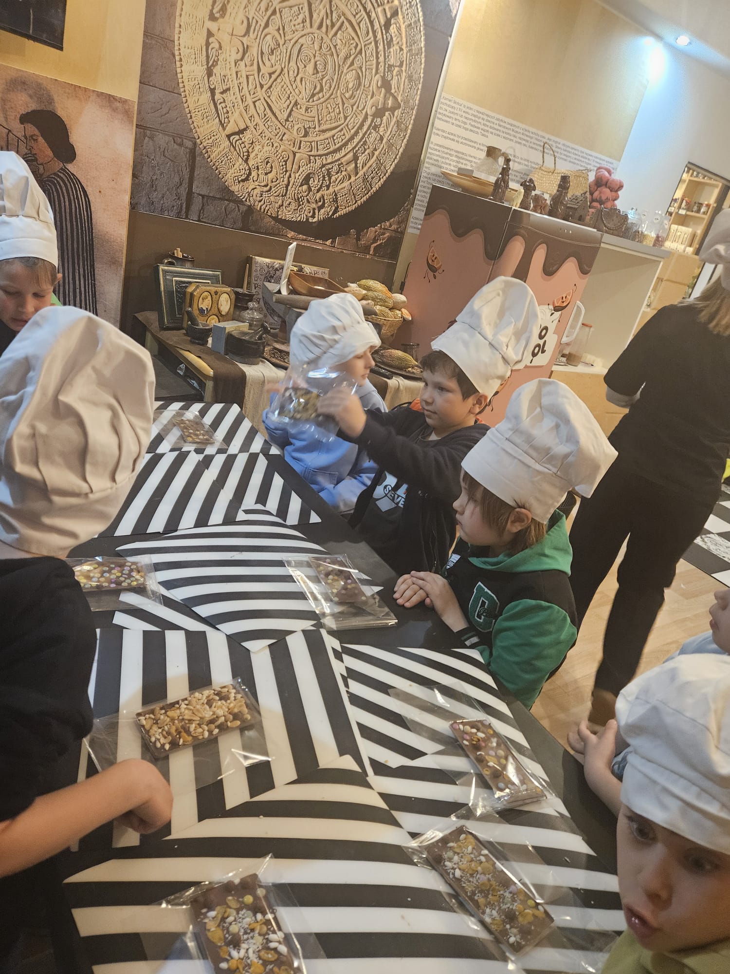 Uczniowie klas pierwszych mieli okazję uczestniczyć w wyjątkowej wycieczce do Muzeum Czekolady. Podczas wizyty poznali historię powstawania czekolady – od ziaren kakaowca aż po gotowy produkt. Dzieci dowiedziały się również, jak wygląda proces produkcji oraz jakie składniki są potrzebne do stworzenia ich ulubionych słodkości.
