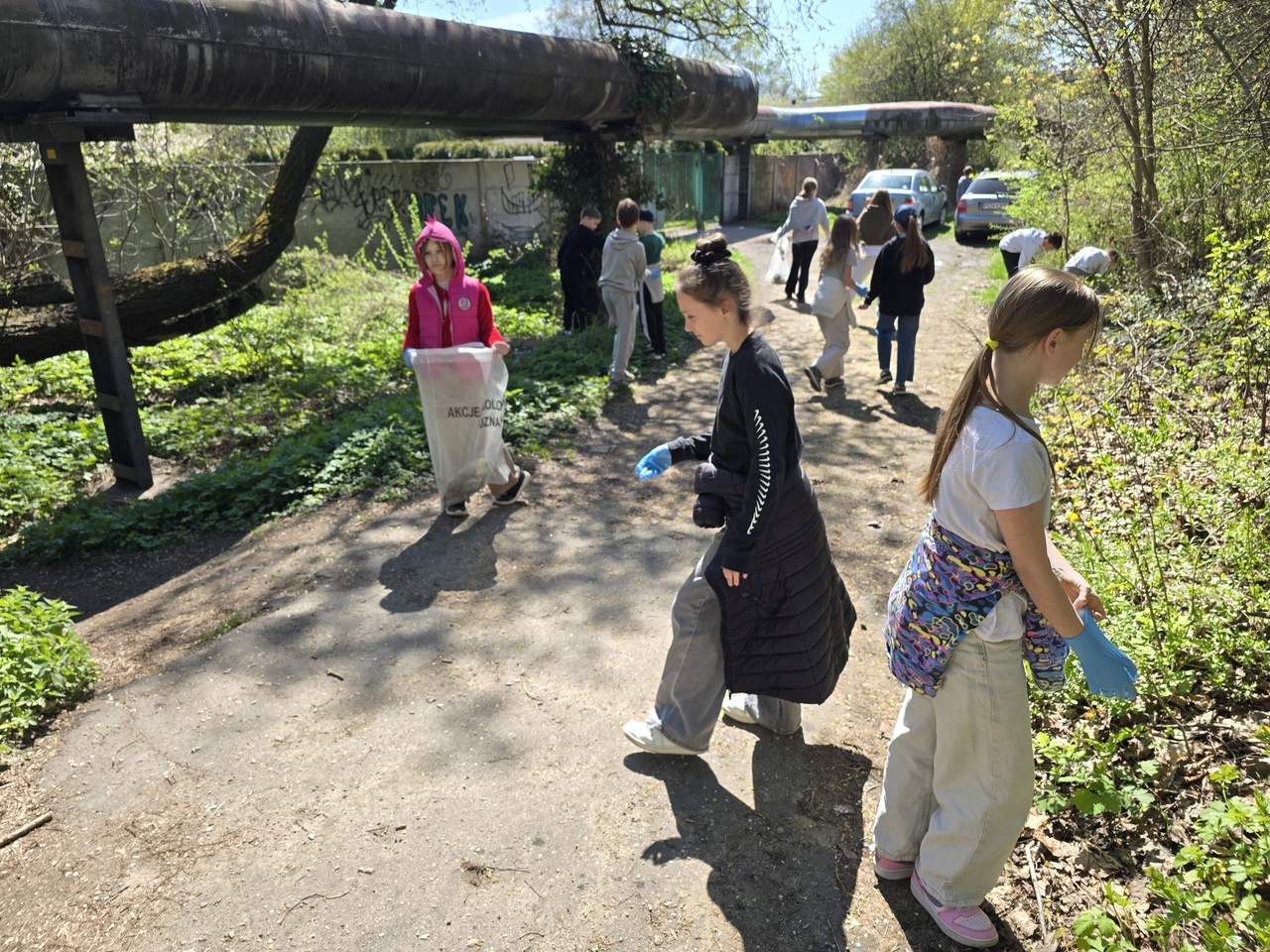 W środę 22 kwietnia, z okazji Dnia Ziemi, uczniowie klas czwartych wzięli udział w akcji „Wiosenne Porządki”. W ramach działań proekologicznych uczniowie uporządkowali teren wzdłuż ogródków działkowych na Wildzie. Dzięki ich zaangażowaniu okolica stała się czystsza i bardziej przyjazna dla mieszkańców. Akcja była doskonałą okazją do kształtowania postaw proekologicznych oraz budowania świadomości odpowiedzialności za środowisko naturalne.
