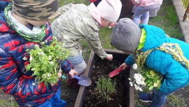 Przedszkolaki rozpoczęły wiosenne przebudzenie w kącikach przyrody – pomagały i same sadziły kwiaty, siały nasiona w donicach na placu zabaw. Tego typu zajęcia