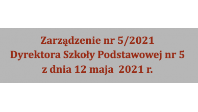 Zarządzenie nr 5/2021 z dnia 12 maja 2021 r. Dyrektora Szkoły Podstawowej nr 5 im. Romualda Traugutta w Poznaniu w sprawie: nauczania hybrydowego