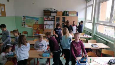 W ramach utrwalenia zasad pisowni wyrazów z RZ, uczniowie klasy 3b zamienili się w poszukiwaczy wyrazów. Ich zadaniem było odnaleźć 4 różne wyrazy