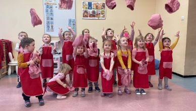Z okazji obchodzonego 9 lutego Międzynarodowego Dnia Pizzy, Biedronki i Misie uczestniczyły w warsztatach robienia pizzy od A do Z. Po założeniu ochronnych