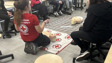 Klasa 8a podczas lekcji edukacji dla bezpieczeństwa, pod czujnym okiem ratownika medycznego, uczyła się udzielania pierwszej pomocy przedmedycznej. Zajęcia przeprowadzone przez specjalistę przygotowywały